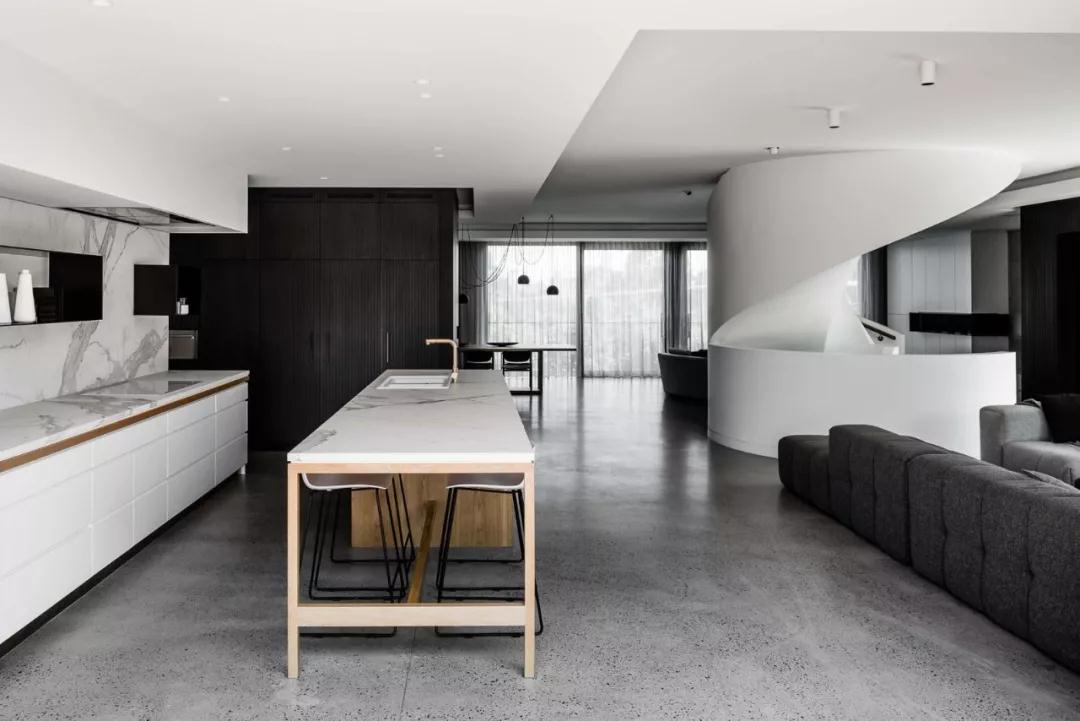 深圳裝修公司設(shè)計(jì)事務(wù)所,利用形式、紋理和對比來創(chuàng)造一個優(yōu)雅豪華的家庭住宅,直條的力量與弧線的柔和,混凝土的剛強(qiáng)與原木的溫柔,一場力與柔的較量上演。。。。