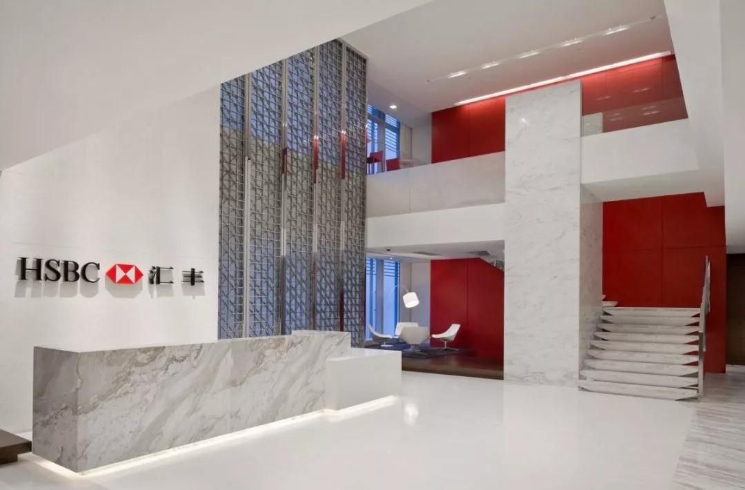 在匯豐銀行辦公室裝修室內(nèi)設(shè)計項目提案中,深圳裝修公司設(shè)計團(tuán)體重點突出了匯豐的品牌形象。