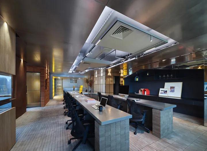 空間的各種可能性使生活和工作密不可分,并且一直在空間中實踐“生態時尚”的表達。這個大膽的想法是,深圳裝飾公司將在有限的高層建筑空間中創建一個自然而透明的“創意公園”,讓她有“空中建筑”的氣息。讓忙碌而擁擠的城市中的員工,在摩天大樓建造的鋼鐵森林中,不再感到寒冷和孤獨。讓這個充滿溫度和凝聚力的辦公空間,激發員工打破常規,繼續創造想法;同時,這個辦公空間延續了上海的基因和上海的歷史魅力,讓過去和未來在這里碰撞,整個辦公室似乎都在截斷城市的半邊天。從景觀上看,不同高度的建筑物并且紋理散布在眼睛可以觸及的地方。屋頂,紅磚墻,窗戶,樹木這形成了一個新領域,一個隱藏在摩天大樓中的“創意公園”。走進辦公室就像沿著蜿蜒的小路慢慢進入街道公園,樹蔭籠罩,紅磚砌成的墻壁,小路,長椅,猶如撕開色彩斑sky的天空,并用它作為畫布欣賞被不同風格的建筑物包圍和高峰,他們似乎在過去和將來徘徊,并立即進入活躍的創意世界。
