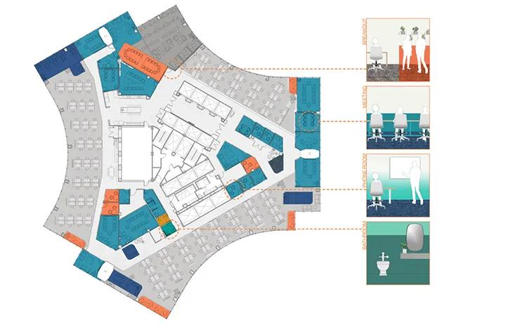 在這個醫療領域的項目中,有必要采用鮮艷的色彩,許多團隊成員認為傳統的醫療空間(甚至辦公室)通常過于中性和傳統設計。在箱子的閱讀區域和周圍的休息空間中,特別采用了漂亮的色彩消除了這種刻板印象。地毯鋪裝的精心更改以及色彩飽和的家具搭配,為整個環境帶來了多彩的愉悅感,甚至浴室也完全沉浸在優雅的色彩中。