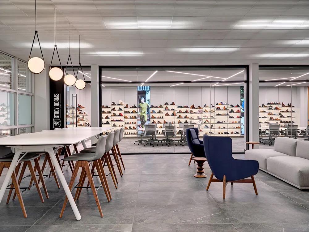 全新設(shè)計(jì)的品牌陳列室位于一樓的中心,接待批發(fā)和零售客戶。它目前以虛擬方式顯示。每個(gè)房間都代表著一個(gè)品牌的體驗(yàn)品質(zhì);但同時(shí),所有的房間都是由相似的材料連接起來(lái)的。設(shè)計(jì)團(tuán)隊(duì)規(guī)劃了一個(gè)中央接待空間,為所有品牌房間服務(wù),還有一個(gè)安靜的工作或午餐空間,直到他們可以與客戶面對(duì)面交流。