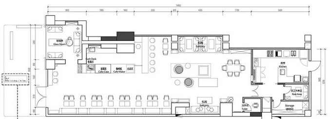 咖啡的店面是狹長(zhǎng)型,并且底部的自然光線非常差,因此合理安排空間就成為了一種挑戰(zhàn)。深圳裝飾公司設(shè)計(jì)師師決定在底部最暗的地方設(shè)置一個(gè)會(huì)客室,通過應(yīng)用大量的吊燈并以方形的竹子天花作為亮點(diǎn),最終把最薄弱的地方變成了空間中的亮點(diǎn)。這樣,就可以讓顧客找到一個(gè)舒適的地方就座。